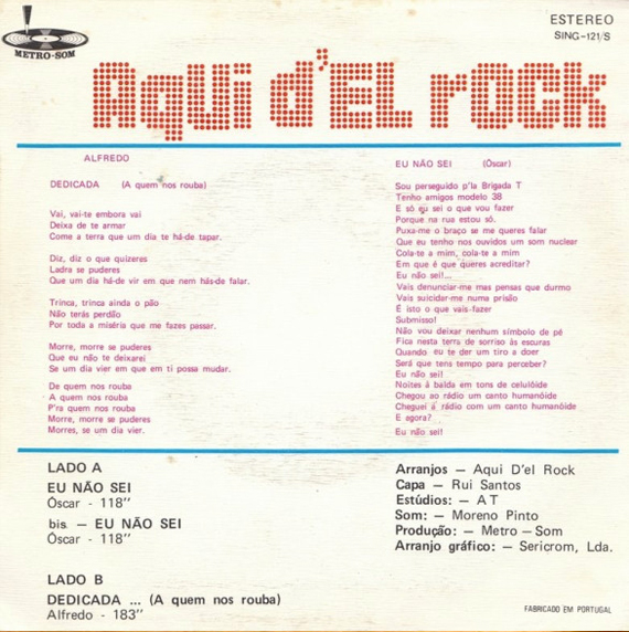 Aqui D'el Rock ‎– "Eu não sei" / "Dedicada (a quem nos rouba)"
