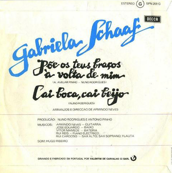 Gabriela Schaaf ‎– "Põe os teus braços à volta de mim" / "Cai boca, cai beijo"